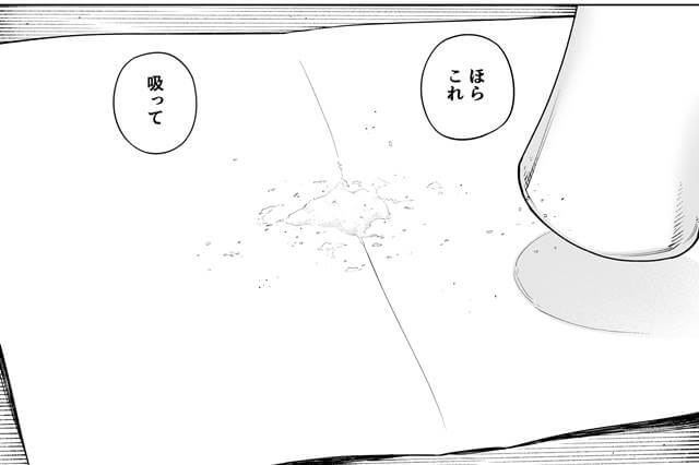 次のページからは元の色調に戻るところが、味わった衝撃の大きさがどれほどのモノだったのかうまく表現されていると思います。