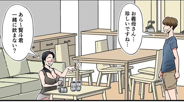 その気になっていた義母が眠れずに一人で酒を飲んでいると、そこへ娘の婿である賢斗がやって来た。