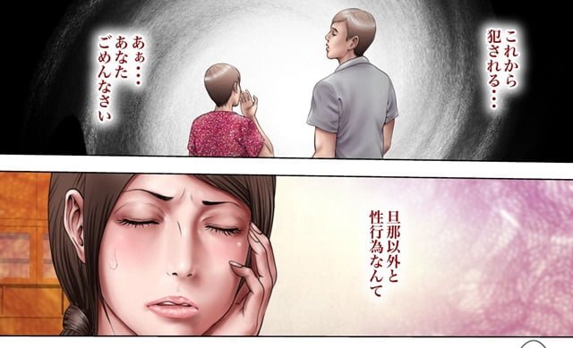 ミルフ書房作、可愛い甥の頼みを聞いてしまったばかりに、弱みを握られ脅されて、夫とは比較にならないデカチンと、果てる事のない性欲に圧倒されて堕ちていく熟女の物語。