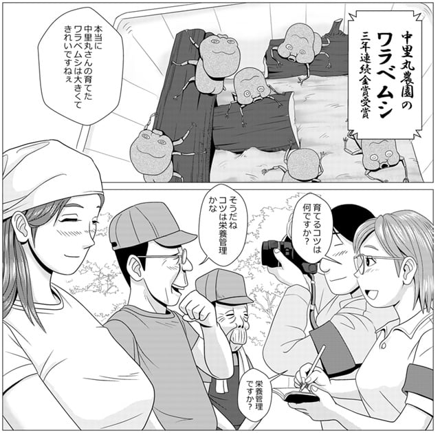 中丸里農園で「ワラベムシ」の養殖を営む夫婦のお話。