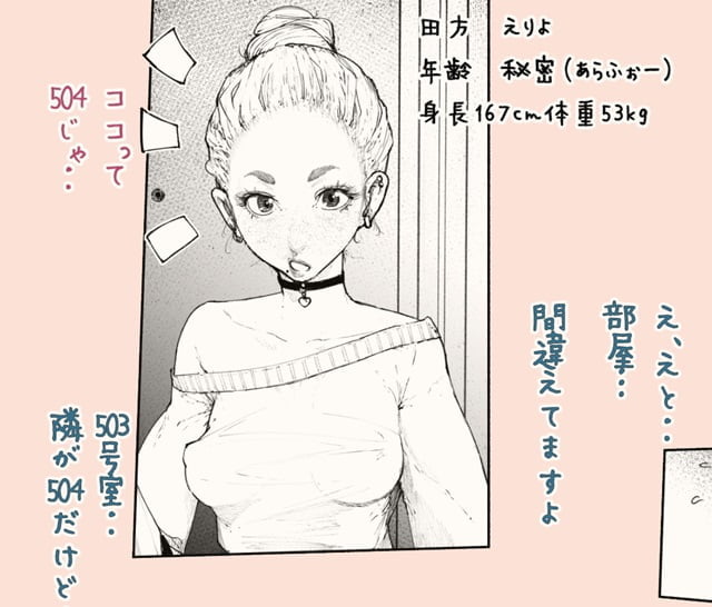毎朝、あいさつするだけの関係。でも、ある日の深夜、突然‥ライブ帰りで、へそピ、網タイ、ニーハイブーツ等という